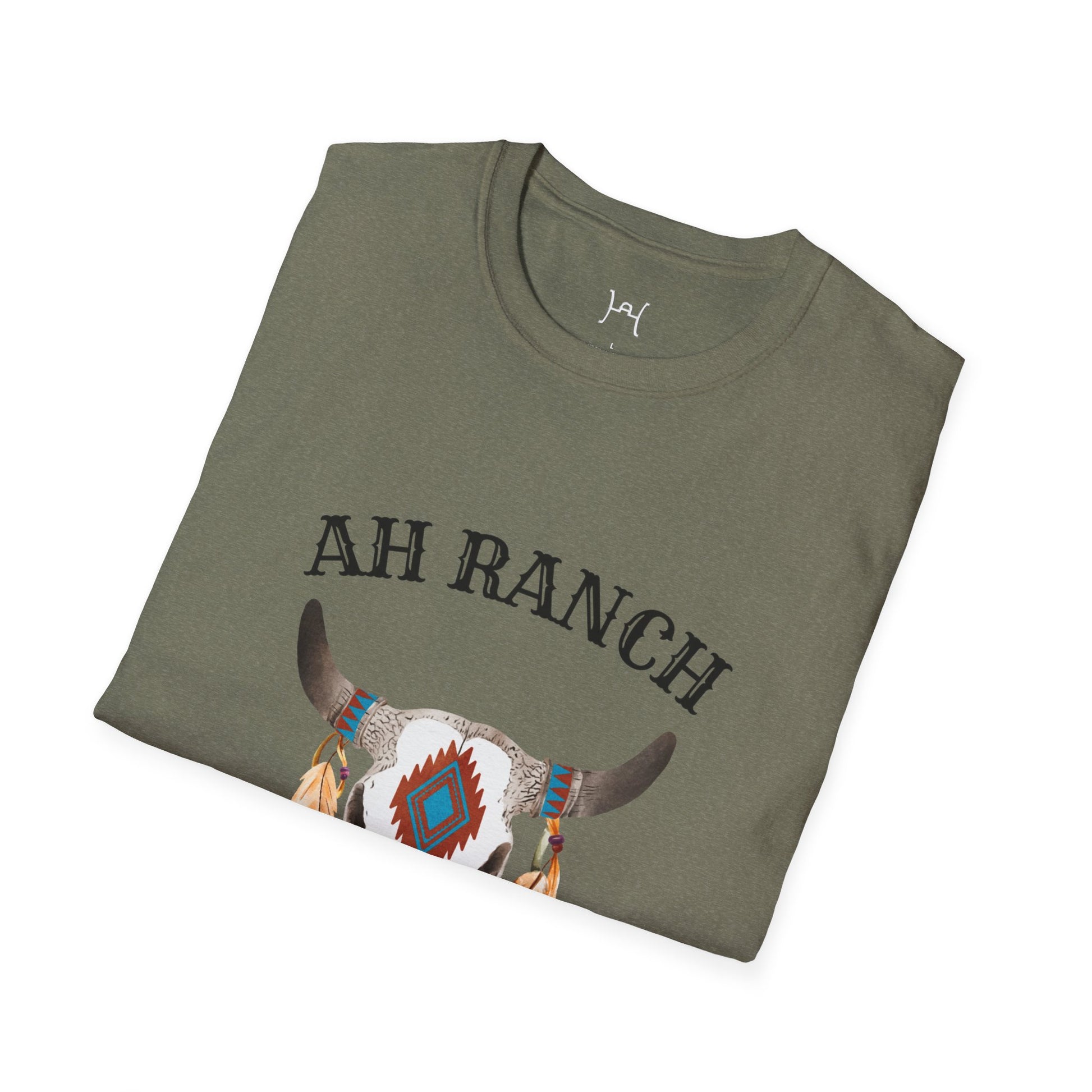 AH Ranch Unisex Softstyle T-Shirt - Vintage Boho Cow Skull Design