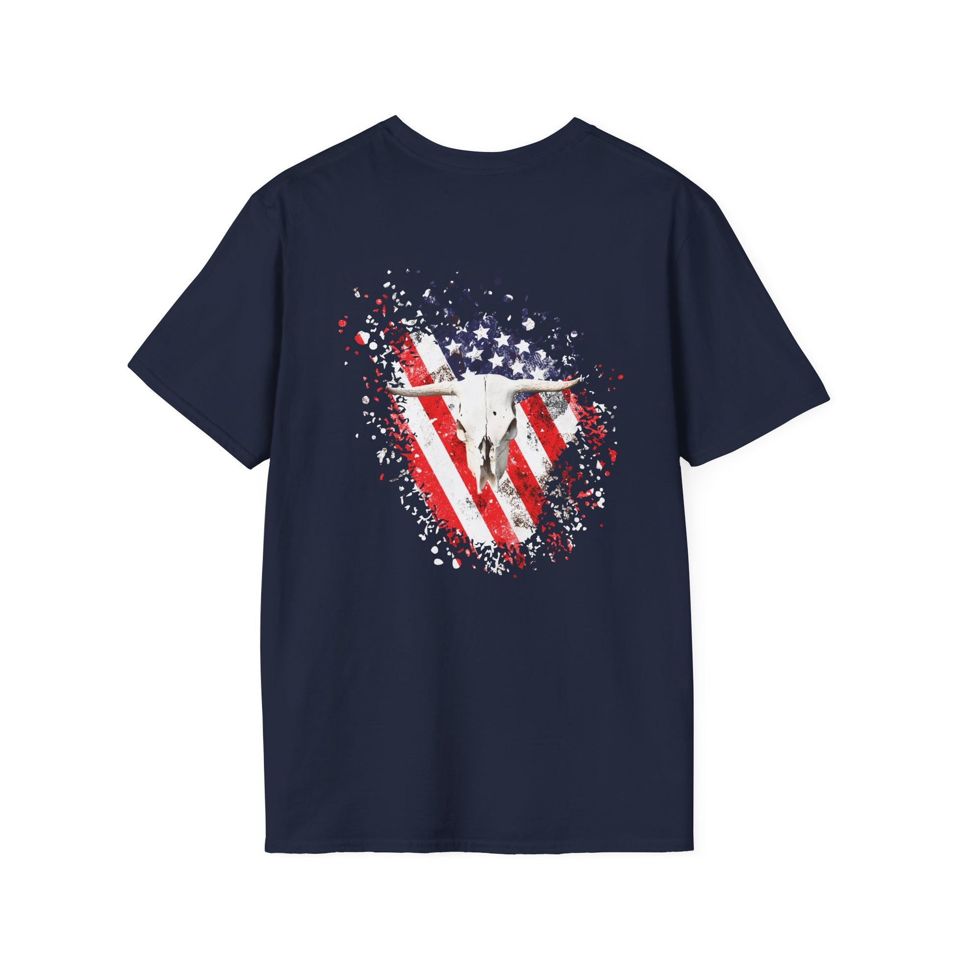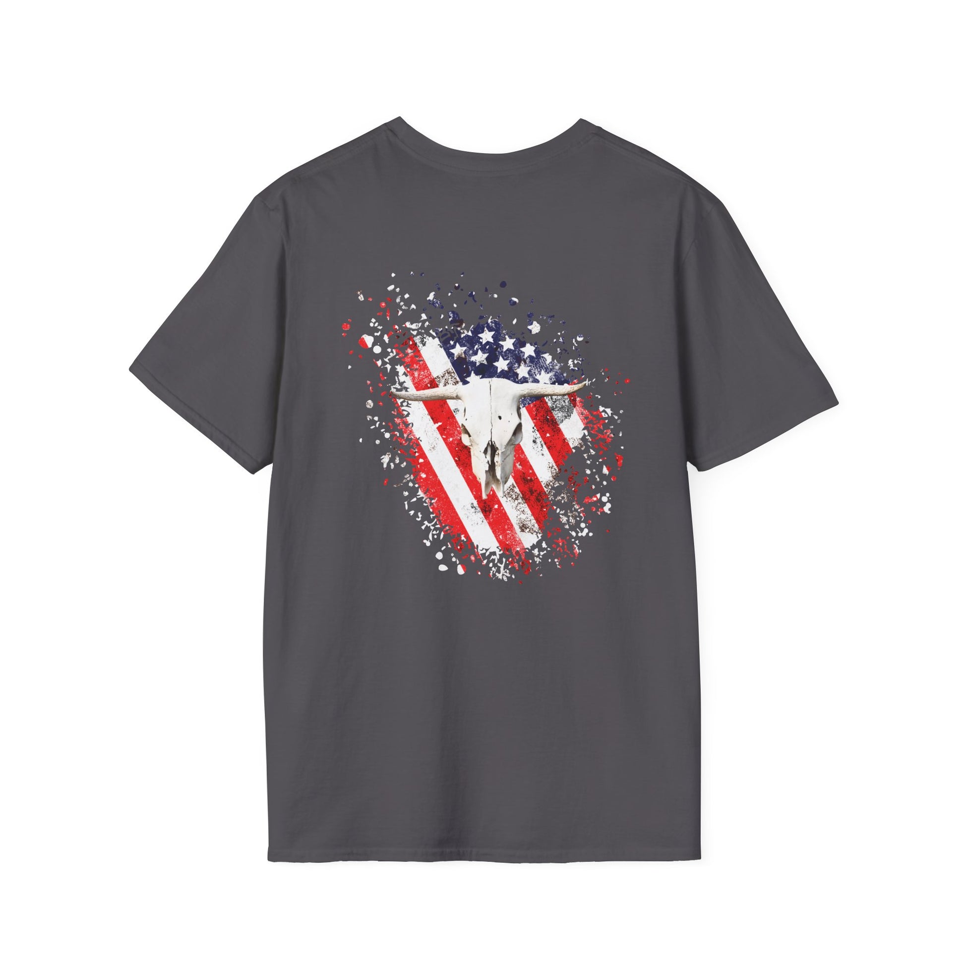 Unisex Softstyle T-Shirt with American Flag and Skull Design - Perfect for Summer Celebrations
